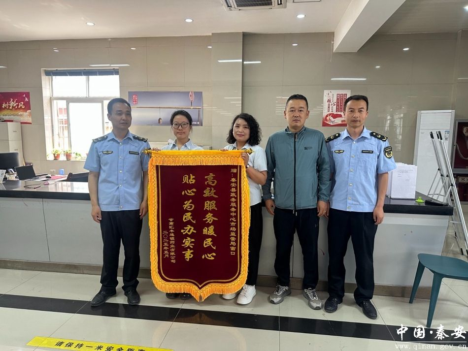 5月20日,一面印有“高效服务暖民心 贴心为民办实事”的锦旗被送到秦安县政务服务中心市场监管窗口,这面锦旗不仅承载着办事群众的真挚谢意,更是对市场监管窗口高效服务、暖心助企的充分肯定。