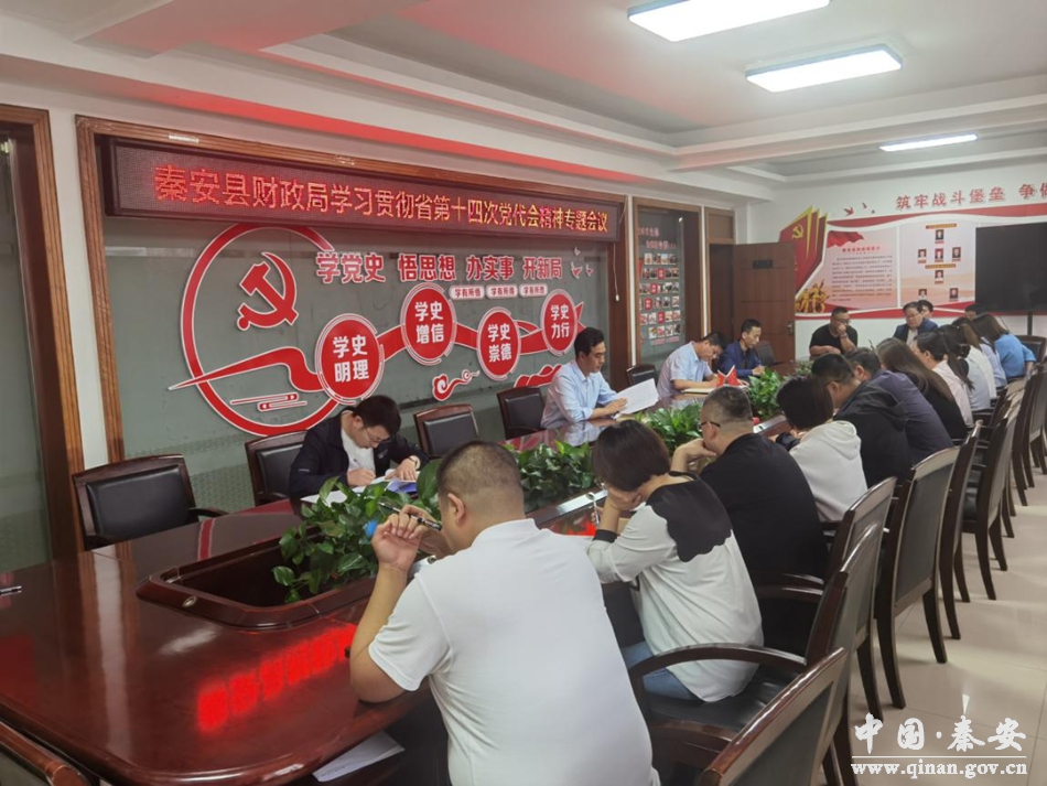 6月7日,秦安县财政局召开专题会议,传达学习省第十四次党代会精神,结合财政工作实际,安排贯彻落实工作。