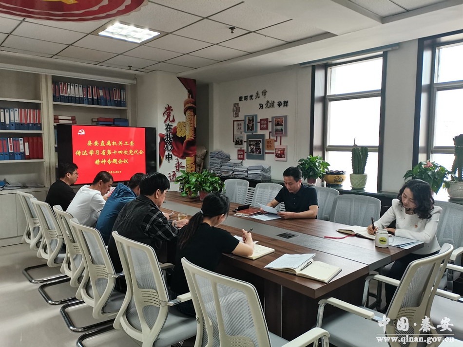 6月6日,秦安县委直属机关工委召开会议,专题传达学习省第十四次党代会精神、中国共产党甘肃省第十四次代表大会关于中共甘肃省第十三届委员会报告的决议和中国共产党甘肃省第十四次代表大会关于中共甘肃省第十三届纪律检查委员会工作报告的决议,传达了县委书记周济同志在县委常委会(扩大)会议上的有关讲话要求,对全体干部职工学习宣传贯彻党代会精神进行了安排部署。
