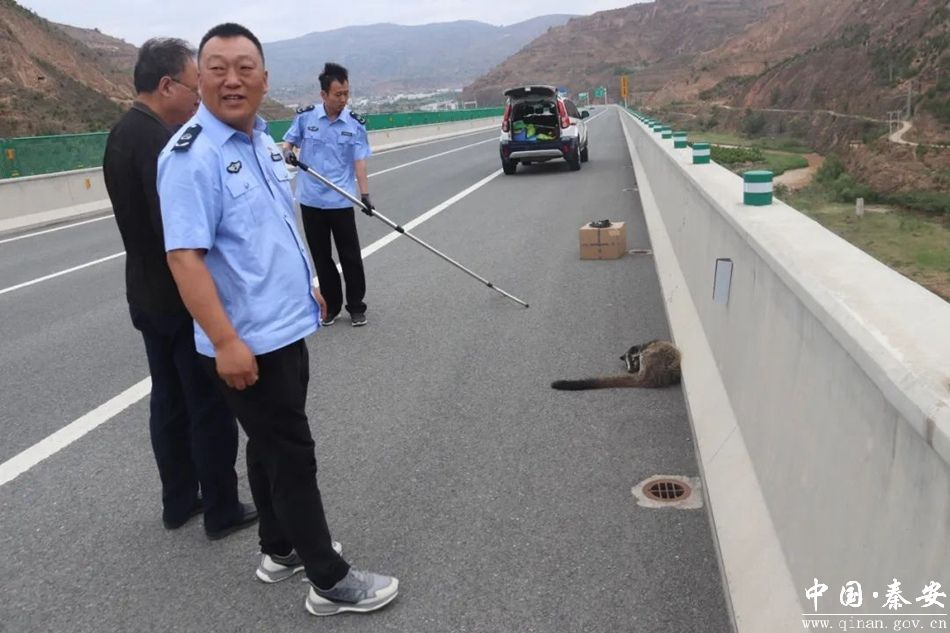 5月28日,秦安县公安局森林警察大队接热心群众报警称:在天平高速公路上(安伏段)发现一只野生动物,请求帮助。