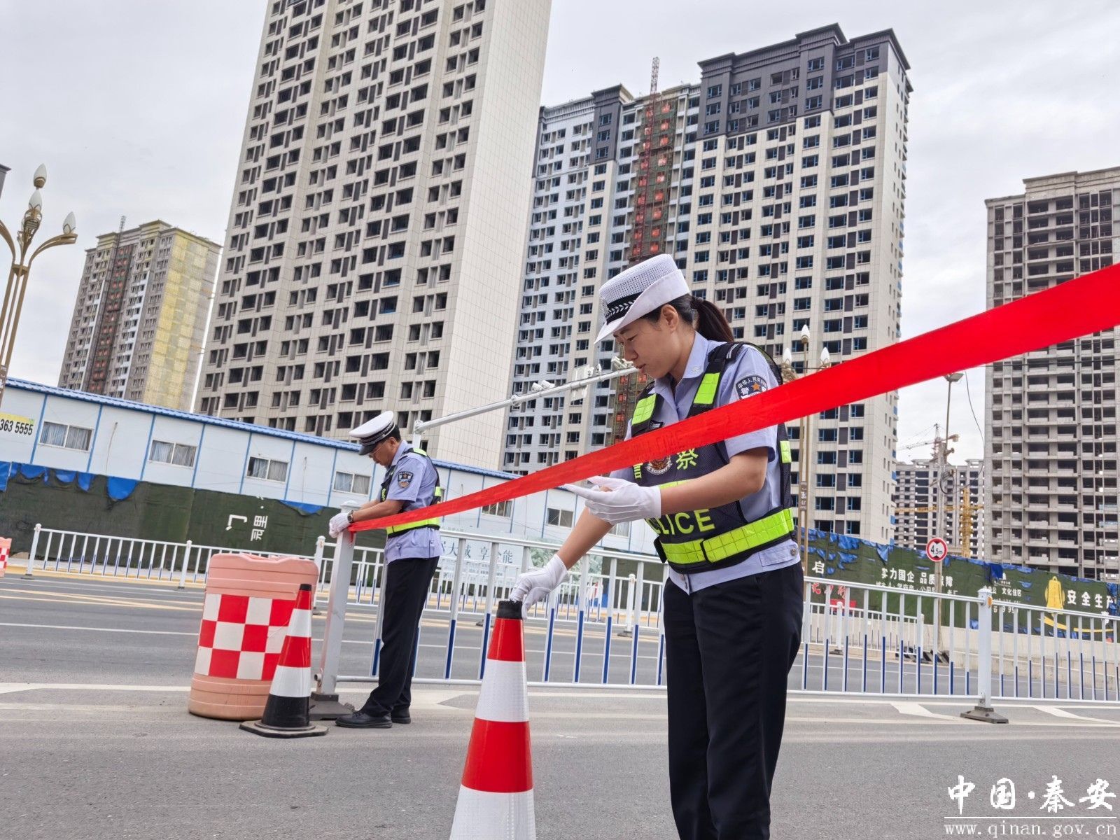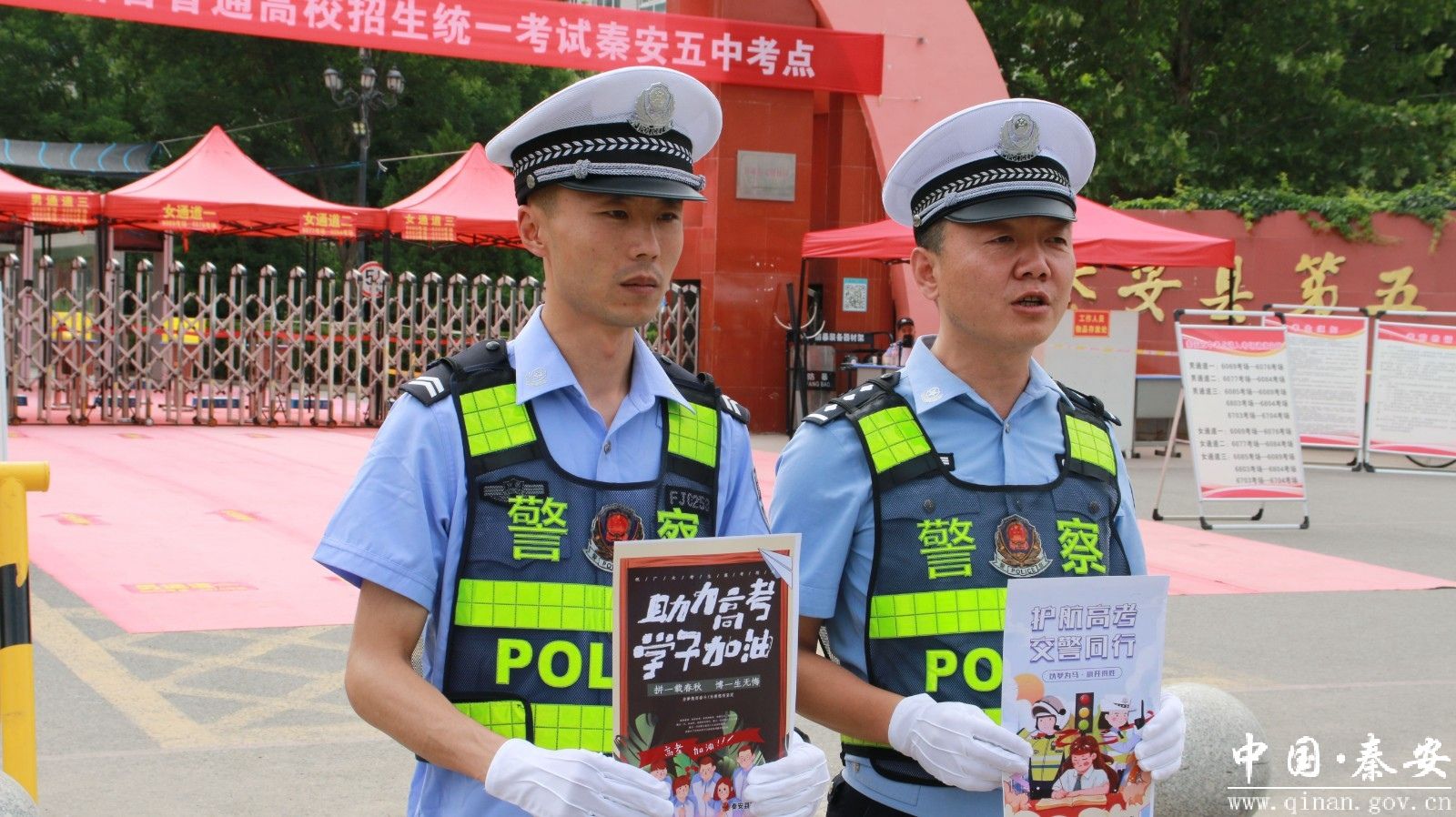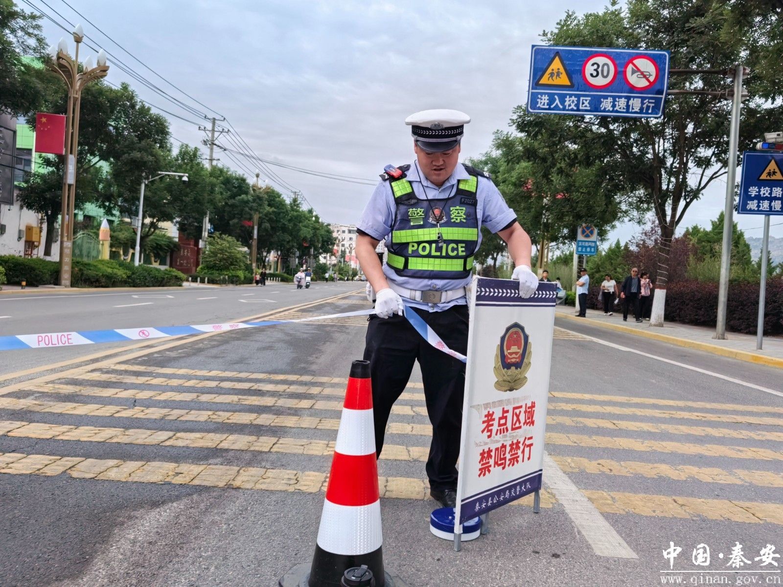 为确保高考顺利进行,高考首日,秦安县公安局交警大队提前谋划、周密部署、采取多种措施,最大限度地把警力投入一线,在各考点门口及周边路段执勤、巡逻,严格控制车辆进出和停留,全面开启高考护航勤务模式,全力以赴为广大考生保驾护航,切实维护高考期间交通安全顺畅。