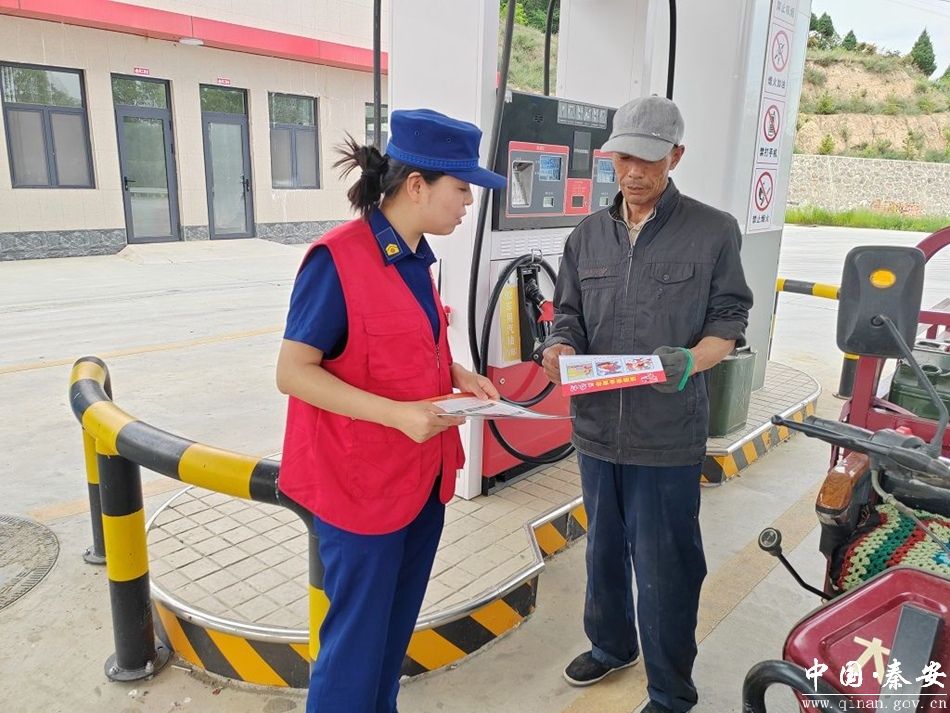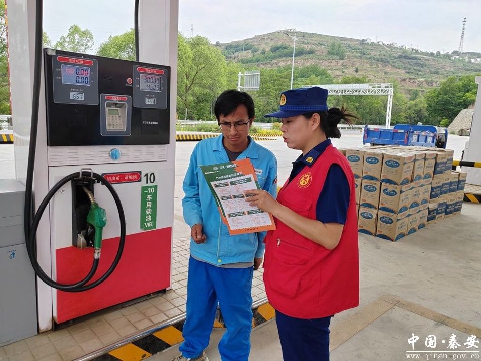 近日,秦安县消防救援大队组织志愿者到辖区加油站开展消防安全宣传,筑牢消防安全防线。