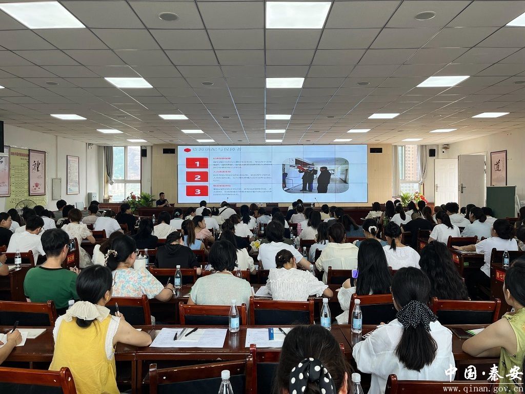 进一步加强全县托育机构消防安全管理工作,提升托育机构消防安全意识和自防自救能力。近日,秦安县消防救援大队走进全县托幼(育)机构业务培训班开展消防安全培训,县托幼(育)机构相关负责人参加培训。