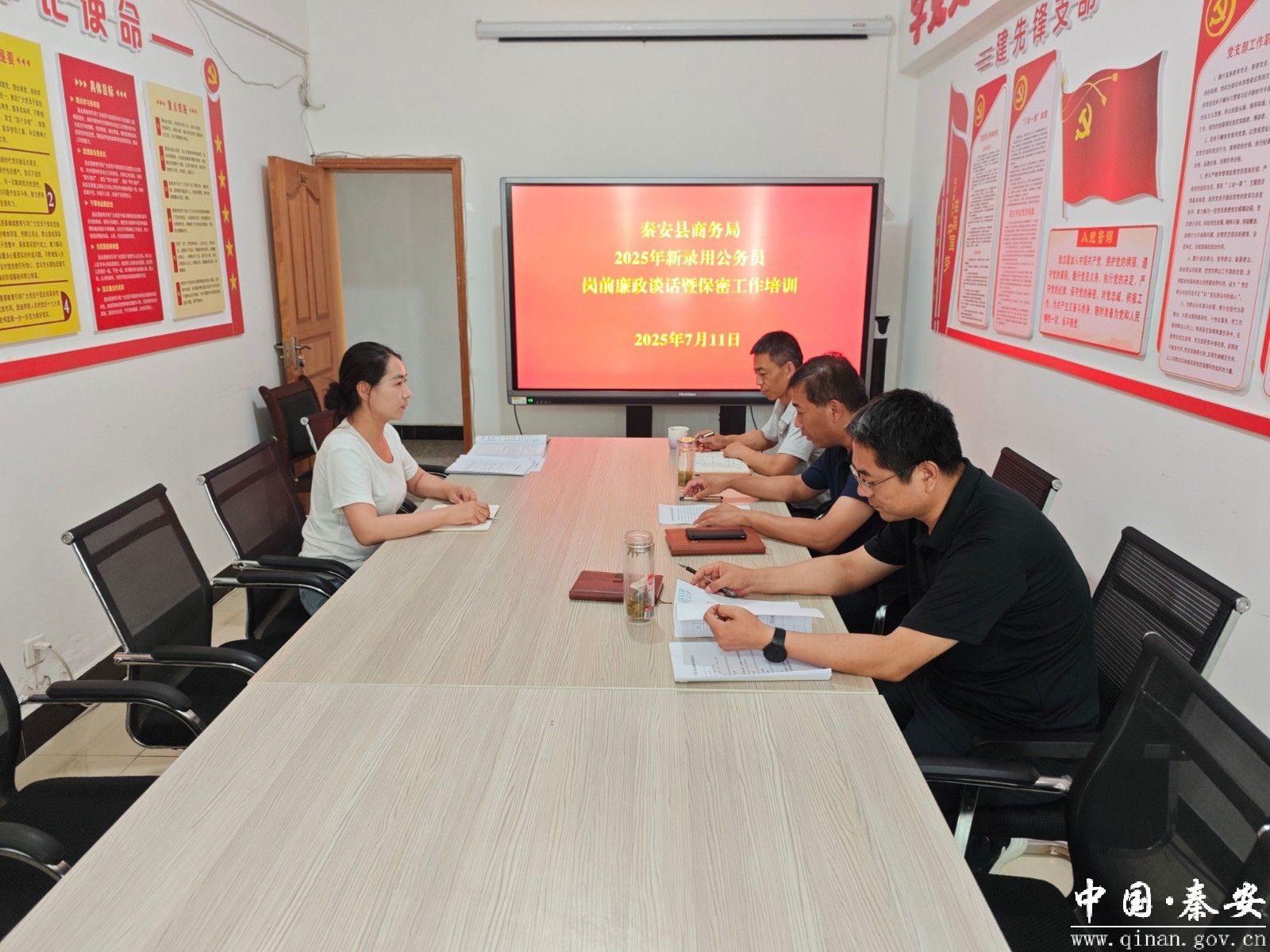 为深入贯彻落实全面从严治党要求,增强新录用公务员的廉洁自律意识和保密责任意识,筑牢拒腐防变思想防线。近日,秦安县商务局对新录用公务员开展岗前廉政谈话暨保密工作专题培训会。