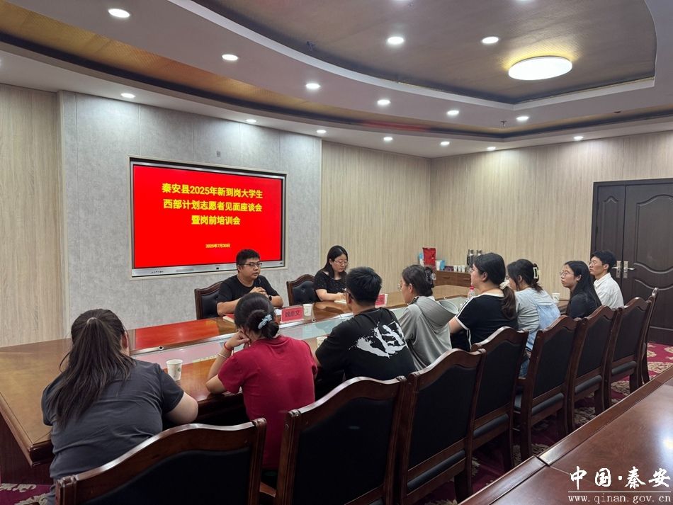 7月30日,共青团秦安县委召开2025年新到岗大学生西部计划志愿者见面座谈会暨岗前培训会。