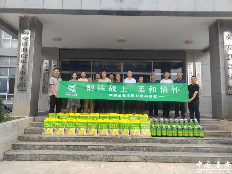8月1日,秦安县退役军人事务局联合金徽酒股份有限公司、秦安县宋氏众康食品商贸有限公司,共同开展“钢铁战士 柔和情怀”主题慰问活动,向20名退役军人送上节日关怀与崇高敬意。