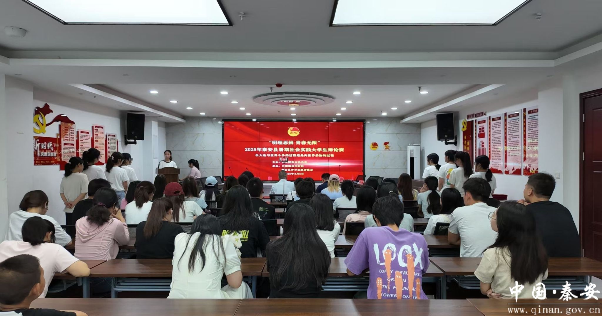 青春因思辨而闪耀,成长因探讨而深刻。为进一步提升社会实践大学生语言表达、逻辑思维和团队协作能力,促进彼此之间的思想交流与碰撞,8月5日,秦安团县委、青年志愿者协会在兴国镇何川社区举办“明理思辨 青春无限”2025年秦安县暑期社会实践大学生辩论赛,共计50余人参加。