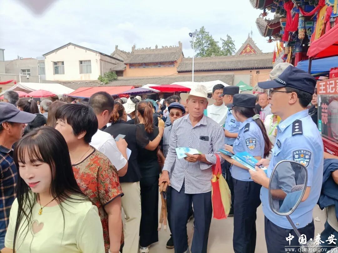 为维护辖区社会面秩序持续稳定,近日,秦安县公安局秦南派出所深入辖区邢泉村庙会现场,利用庙会期间群众聚集的有利时机开展禁毒、防诈骗、防邪教等宣传工作。