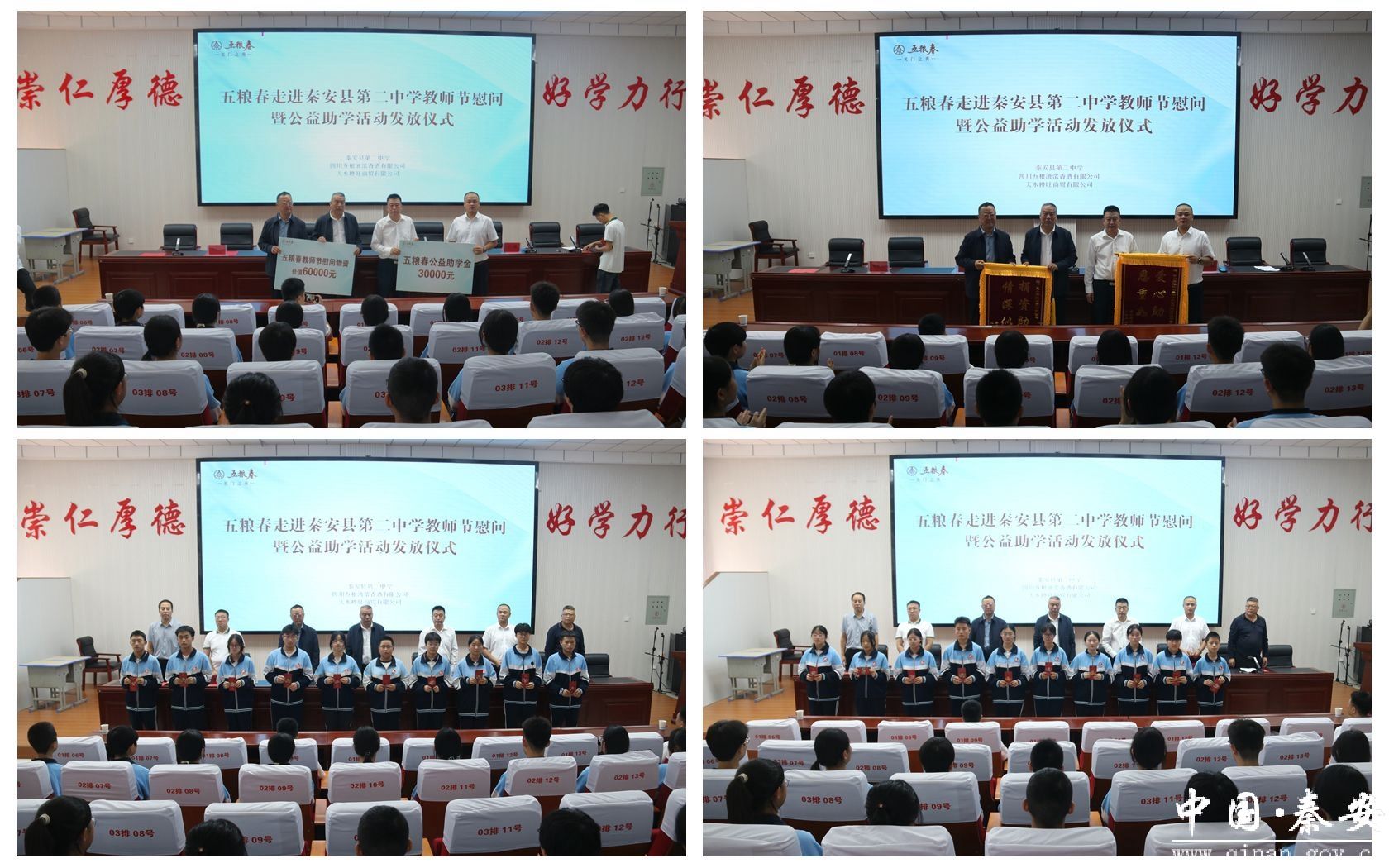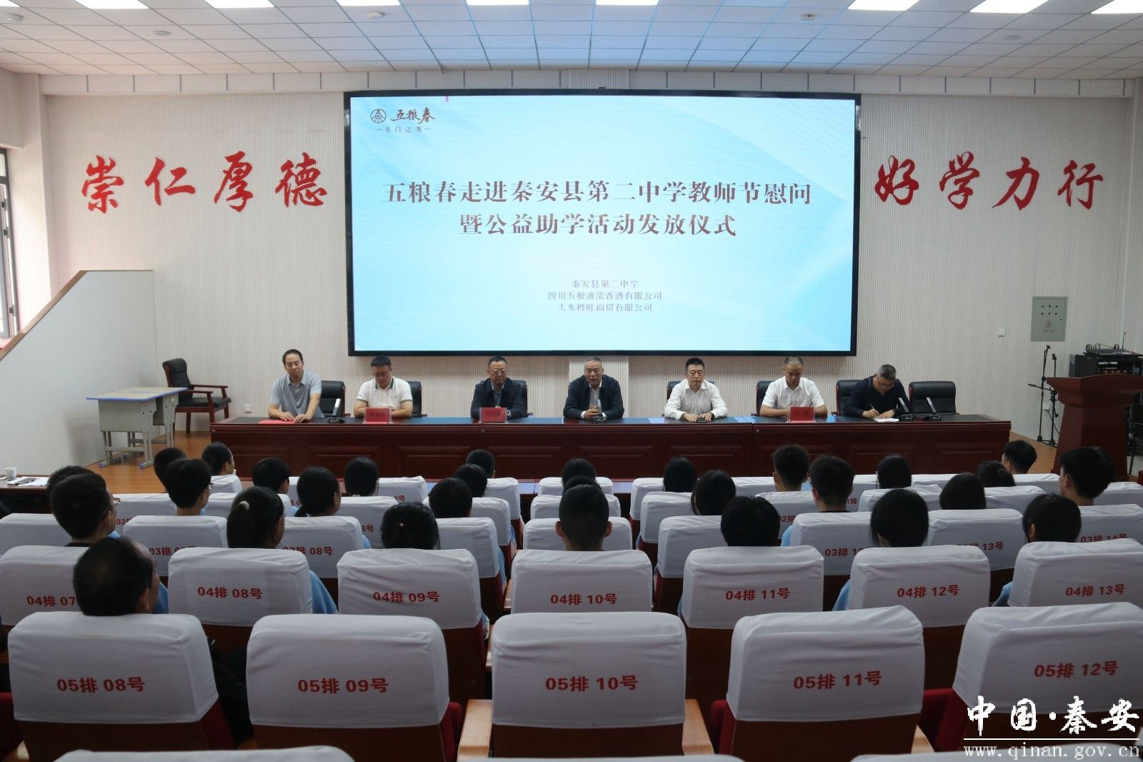 9月10日,爱心企业天水樽旺商贸有限公司走进秦安县第二中学开展教师节慰问暨公益助学活动。向学校30名贫困学生发放资助金3万元及价值6万元的优秀教师代表节日慰问品。