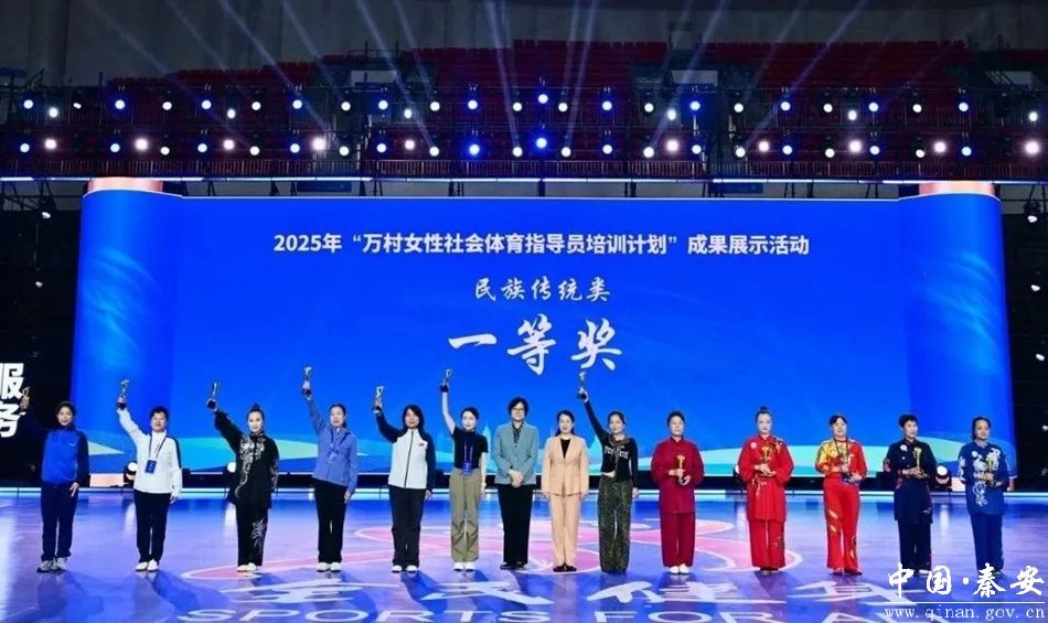 10月14日至16日,由国家体育总局群体司、山东省体育局、山东省妇女联合会、山东省农业农村厅联合主办的 2025 年“万村女性社会体育指导员培训计划”交流展示大会在山东省枣庄市文体体育馆圆满落下帷幕。由秦安县文旅局选送的《陈氏太极拳组合》荣获成果展示活动民族传统类一等奖。