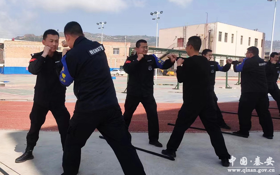 为进一步提高民辅警警务实战水平,提升队伍协同作战能力,近日,秦安县公安局特巡警大队积极开展警棍盾牌操和战术组合训练。