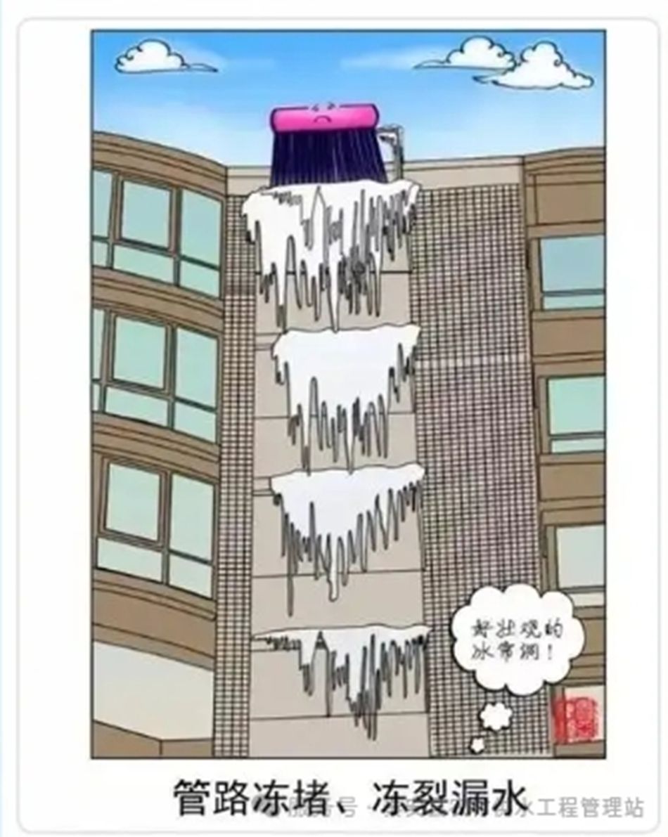 2、“室内防寒”:一些将自来水接入没生火的室内(如厨房、卫生间、洗澡间)的用户也要注意,如果气温降到零度以下时,也应采取保暖措施,关好门窗,防止水管冻破漏水。