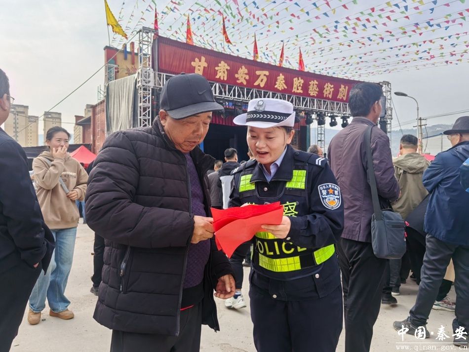 人潮涌动处,安全进行时。10月30日,正值蔡店村传统庙会,为将交通安全知识送到每一位群众身边,秦安公安交管大队创新形式、主动作为,在庙会现场组织开展了以“热闹庙会,平安出行”为主题的道路交通安全宣传活动,让大家在感受传统民俗魅力的同时,把“平安”带回家。