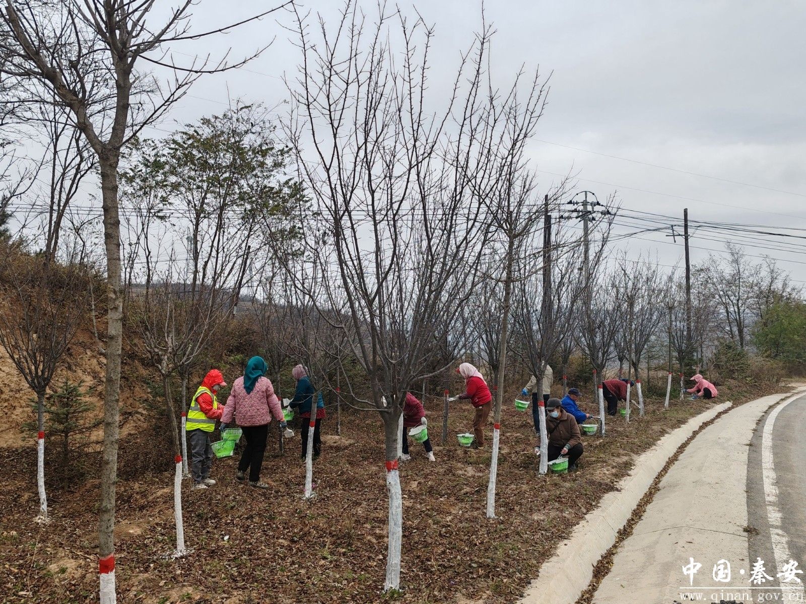 近日,中山镇组织党员干部群众开展了一场热火朝天的行道树冬季管护行动,以实际行动为行道树“添衣保暖”。