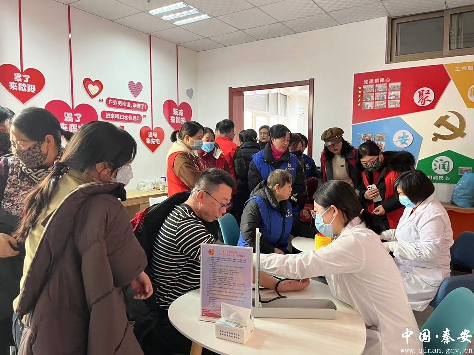 12月5日,秦安县总工会联合何川社区、兴国卫生院,在“工会驿站·骑手之家”何川站点共同开展以“暖‘新’守护·健康同行”为主题的义诊志愿服务活动,用暖心举措为新就业群体撑起“健康保护伞”。