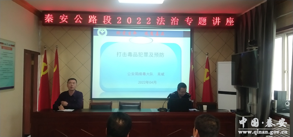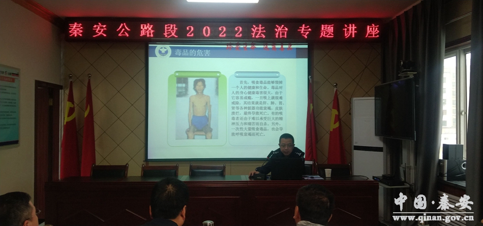 为增强职工法治意识,近日,秦安公路段举办了2022年度法治专题讲座。邀请了秦安县公安局缉毒大队吴斌警官担任主讲,段机关全体干部职工及各养护工区代表参加了会议。