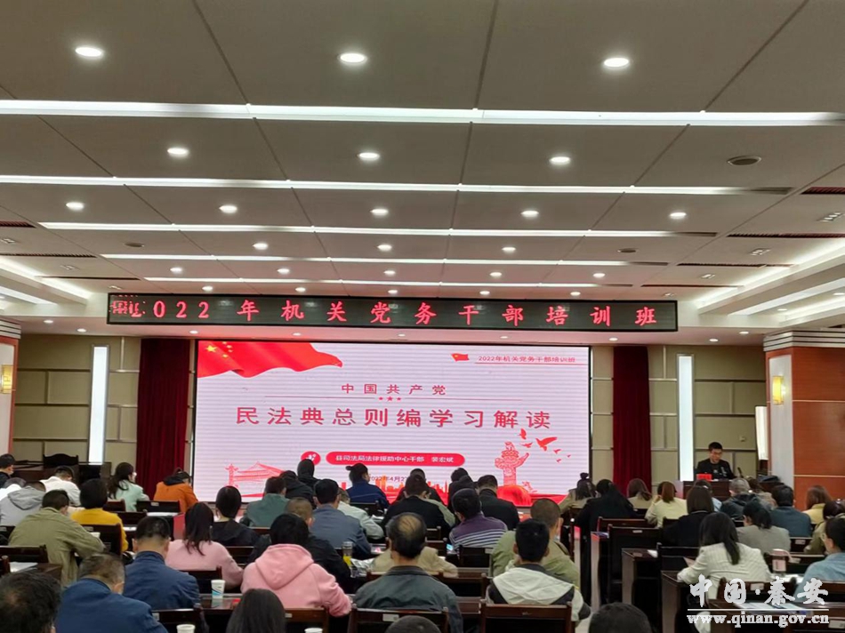 为进一步提升机关党务干部的法治意识,引导广大党员干部带头学法、守法、用法,秦安县司法局法律援助中心干部裴宏斌应邀为秦安县委直属机关工委举办的2022年机关党务干部培训班全体学员进行了《民法典》总则编相关内容的讲解。