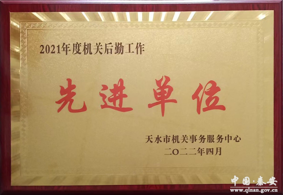 近日,秦安县机关事务管理局再度被天水市机关事务服务中心评为“机关后勤工作先进单位”荣誉称号。