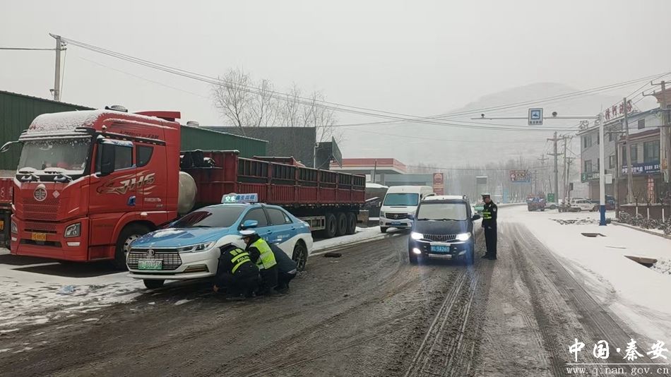 秦安公安交警温馨提示:雨雪冰冻天气交通安全风险加大,请务必提前做好车辆安全检查,及时更换冬季防冻玻璃水和雪地胎。行车时请牢记:“控车速、稳方向、保车距”,避免急转弯和紧急制动,冰雪路面摩擦系数低,谨慎慢行是确保安全的关键。出行路上,安全第一。