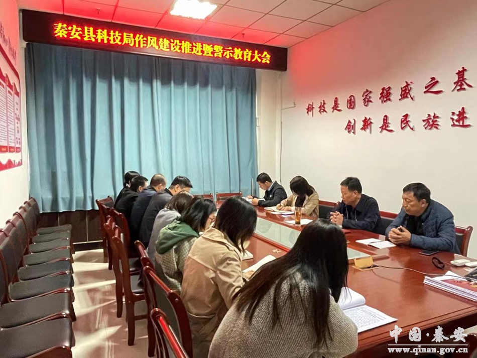 为进一步加强党风廉政建设,提高党员干部的拒腐防变能力,营造风清气正的良好干事氛围,推动作风建设落地见效,4月21日,秦安县科技局召开作风建设推进暨警示教育大会。