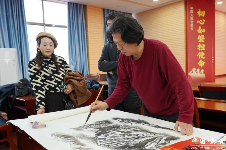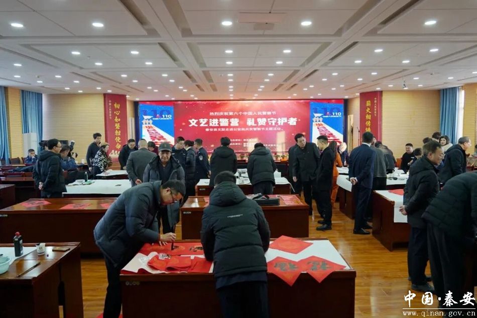为庆祝第六个中国人民警察节,1月9日,秦安公安文联举办“墨香润警营 翰墨映忠诚”书画交流活动,邀请县文联艺术家走进警营,以笔墨致敬警察节、礼赞新时代警营风采。