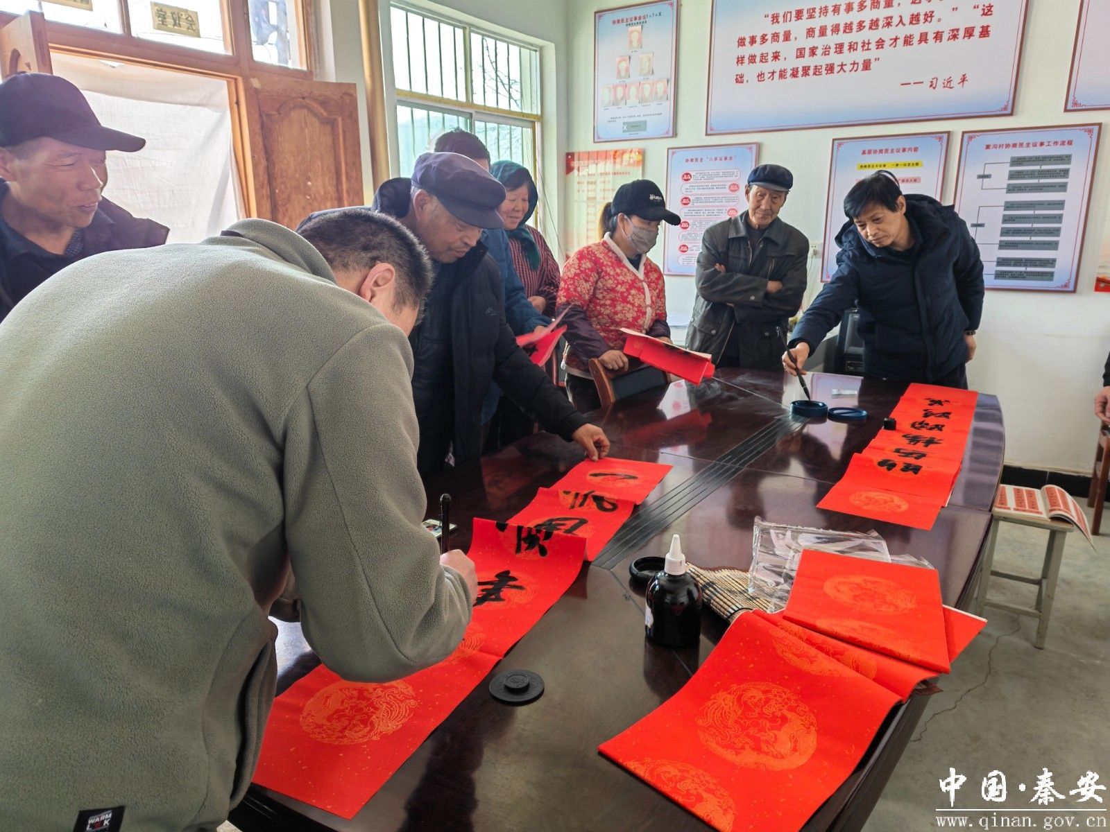 慰问组为村民们准备了米、面、油、鸡蛋等饱含心意的节日生活物资,以及象征吉祥如意的火红春联。活动现场墨香四溢,书法爱好者挥毫泼墨,一副副寓意美满、笔力遒劲的春联在他们笔下诞生,仿佛将春天的气息和温暖的祝福凝聚在字里行间。这份“量身定制”的传统文化礼物,不仅装点了村民的家门,更传递出喜迎新春、共盼佳节的浓厚氛围。