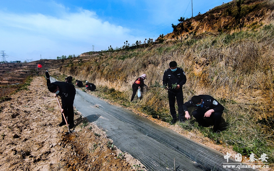 五营派出所党支部以党建为引擎领航,助推农业发展,促进乡村振兴为契机,进一步规范党支部组织生活,切实牢固党员的宗旨意识,提升党员的服务意识, 4月8日,党支部成员五营、莲花、陇城三个派出所党员民辅警联合辖区治安户长深入田间地头,开展“助农栽种”党日活动,让党员干部在助耕中体验民生、拉近与群众的距离。