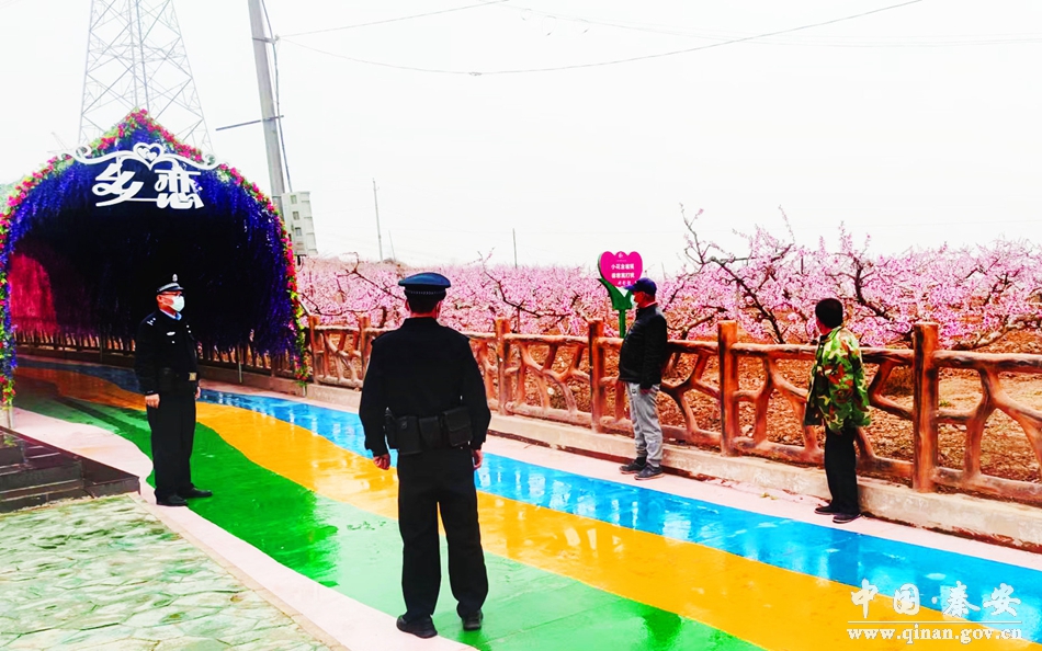 随着秦安县2022年“云上桃花会”的顺利召开,秦安县刘坪镇秦洼村、何湾村“云上桃花会”景点吸引了众多媒体记者、摄影爱好者及附近村民前来采风创作、观赏。为确保疫情防控期间各项措施落实落地,营造一个安全、优美、放心的景区环境。连日来,秦安县公安局刘坪派出所组织全体民辅警深入辖区各景点,为切实维护人民群众身体健康及生命安全和“云上桃花会”的有序开展保驾护航。