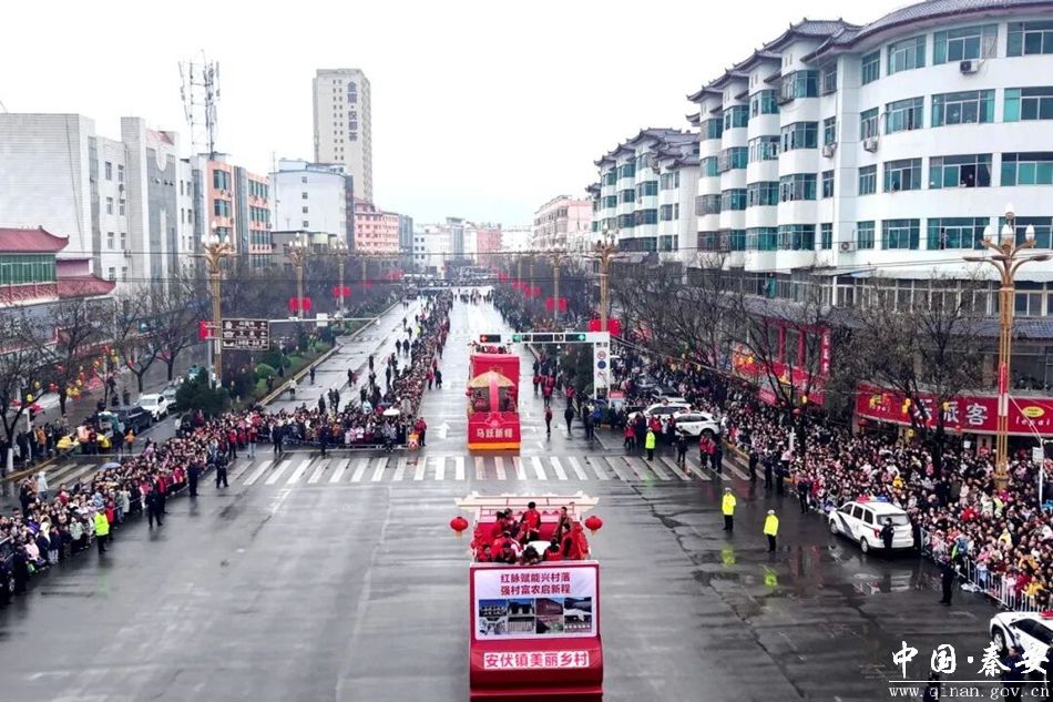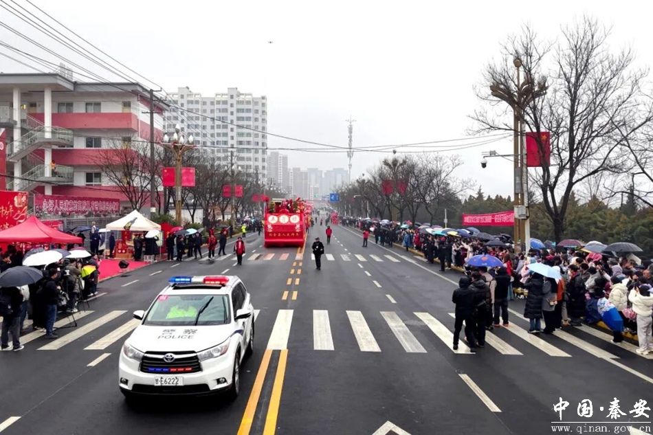 骏马踏春启新程,社火欢腾庆佳节。3月1日(农历正月十三),秦安县2026丙午马年“骐骥奋蹄 腾飞秦安”春节社火汇演隆重举行,来自17个镇和民间的彩车、高跷、旱船、秧歌、舞龙、舞狮、锣鼓等社火队伍,沿滨河路、太白街、解放路、成纪大道等道路进行汇演,活动现场热闹非凡,呈现出一派喜庆欢乐的热闹景象。为确保活动安全、有序、顺畅开展,秦安县公安局全警动员、周密部署,坚守岗位、忠诚履职,用坚守与奉献筑牢平安防线,为社火现场筑起“藏蓝风景线”。