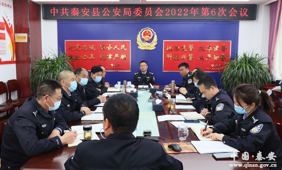 4月8日,秦安县政府副县长、公安局党委书记、局长薛天胜主持召开第6次局党委会议,认真学习传达中共中央办公厅《关于推动党史学习教育常态化长效化的意见》精神,研究部署贯彻落实意见;讨论研究了局党委班子成员党建联系点、成立疫情防控点临时党支部、一线送奖等相关事宜。全体局党委班子成员参加会议。