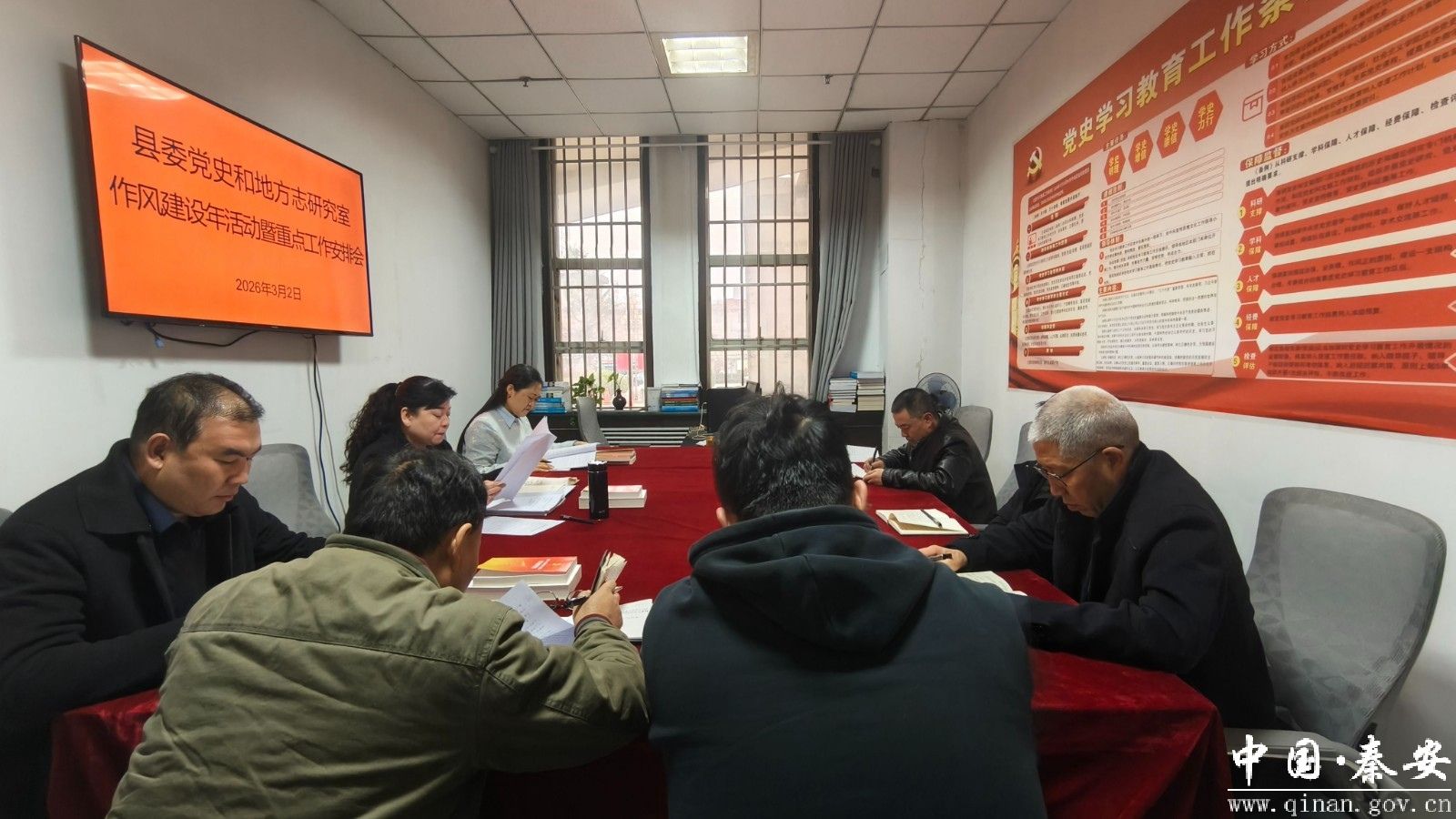 3月2日,秦安县委党史和地方志研究室召开作风建设年活动暨重点工作安排会,传达学习了《天水市作风建设年活动实施意见》等精神,对全室作风建设工作进行动员部署,统筹安排近期重点工作任务,全体党员干部参加会议。