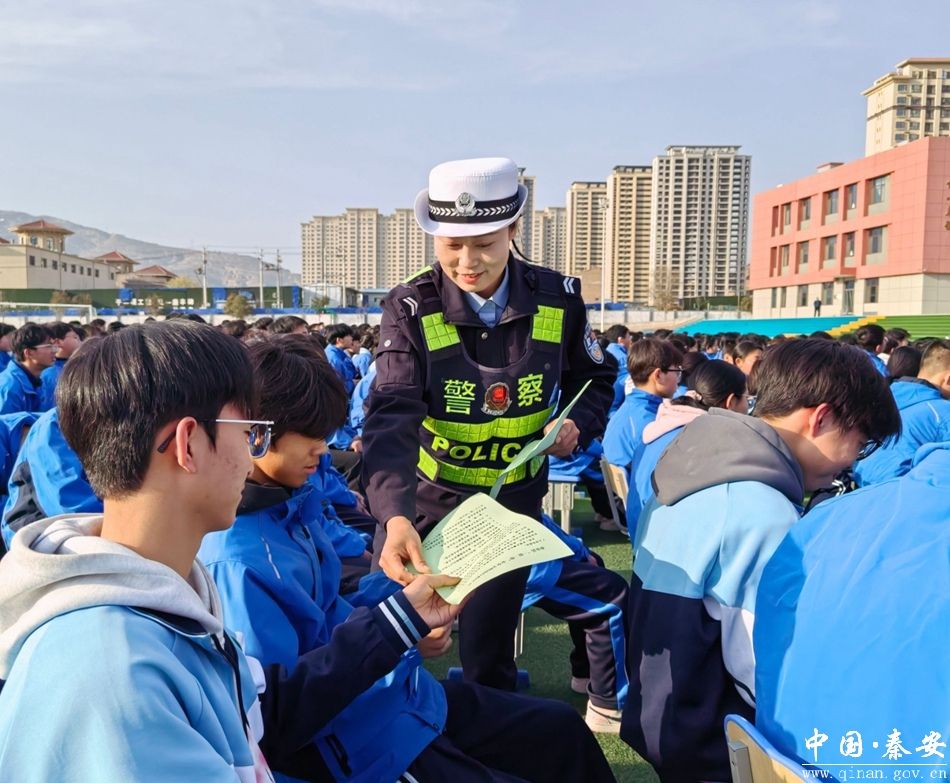 为切实做好春季开学季道路交通安全宣传教育工作,进一步提升广大师生交通安全意识和自我防护能力,3月3日,秦安县公安局交管大队联合秦安县人民检察院走进秦安五中高中部,开展以“开学第一课”为主题的交通安全教育宣传活动。