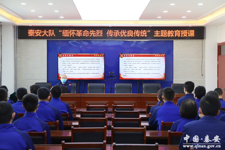 开展主题教育授课。大队通过开展“缅怀革命先烈,传承优良传统”主题教育授课,组织全体队伍认真学习革命先烈事迹,继承先烈遗志,弘扬革命精神,激励全体消防救援人员从革命先烈感人事迹和崇高精神中汲取力量,始终保持同人民群众的血肉联系,把忠诚刻进骨子里、溶入血液中,把不惧艰险、不畏牺牲、英勇献身的革命精神,转化为赴汤蹈火、竭诚为民的实际行动。
