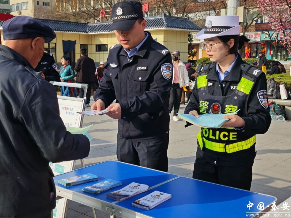为进一步提升社区居民,特别是广大女性朋友的交通安全意识和自我保护能力,营造关爱生命、文明出行的良好氛围,3月6日,在“三八”国际妇女节来临之际,秦安县公安局交通管理大队组织宣传民辅警走进辖区兴国文化广场,将节日的祝福与交通安全知识送到了群众身边。