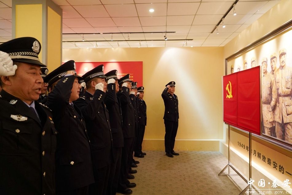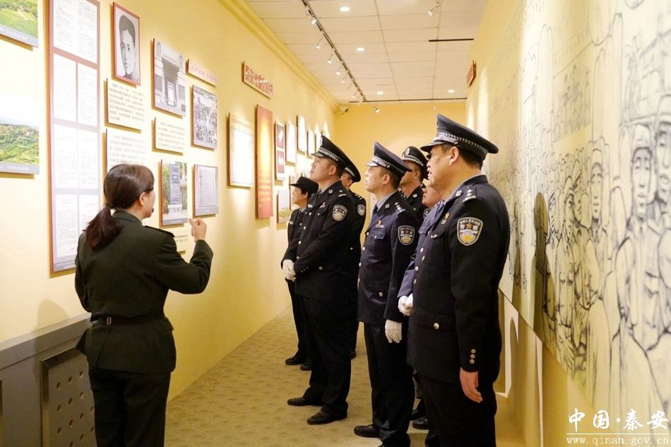 铭记,是为了更好地前行。祭扫仪式结束后,全体人员前往秦安县解放纪念馆参观学习。在讲解员的引导下,民辅警们驻足观看一幅幅定格历史瞬间的珍贵图片,端详一件件历经岁月洗礼的革命文物,聆听一段段感人至深的英烈事迹。从烽火硝烟的战争岁月到波澜壮阔的建设时期,详实的史料和生动的讲述,全景式展现了秦安大地的革命历程与奋斗史诗。在纪念馆内庄严的红色氛围中,全体党员民辅警面向党旗,高举右拳,重温入党誓词。铿锵有力的誓言在展厅内回响,表达了公安民辅警继承先烈遗志、永葆忠诚本色、为党和人民事业奋斗终身的坚定决心。通过沉浸式的参观与庄严的宣誓,大家深刻感悟到红色政权来之不易、新中国来之不易、中国特色社会主义来之不易,在思想上接受了一次深刻的党性教育和精神洗礼。