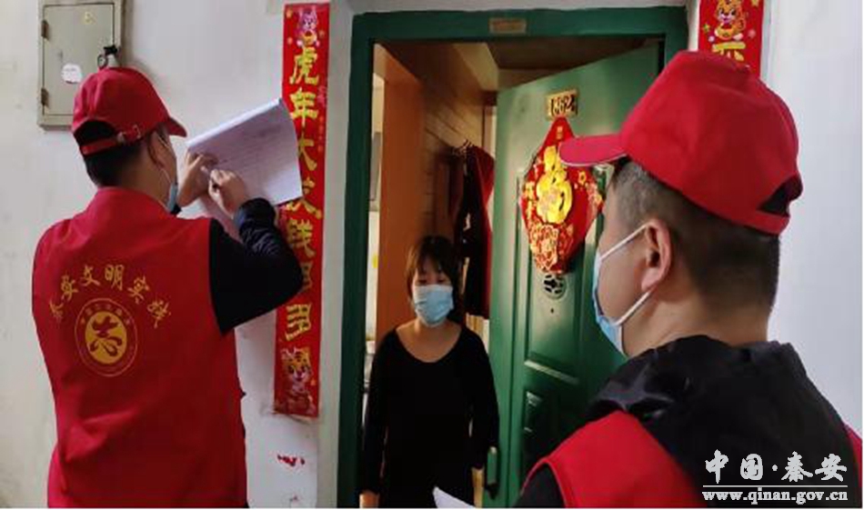 “敲门行动”主要对小区居住学生、医护人员和3月7日以来来秦返秦人员进行“地毯式”排摸,并认真填写《居民小区3月7日以来前来秦安人员排摸统计表》《居民小区3月7日以来外出返秦人员排摸统计表》《居民小区居住学生排摸统计表》《居民小区居住医护人员排摸统计表》4类表,做到一个不漏、一个不少。值班点上实行24小时值班,对所有进入和外出本小区的人员一律落实测温,查验“健康码”“行程码”,扫场所码,询问旅居史,登记异常情况人员等防控措施,并做好宣传引导,告知来秦返秦人员如发现变码要立即联系疫情防控值班点,及时报社区联系上门做核酸检测。