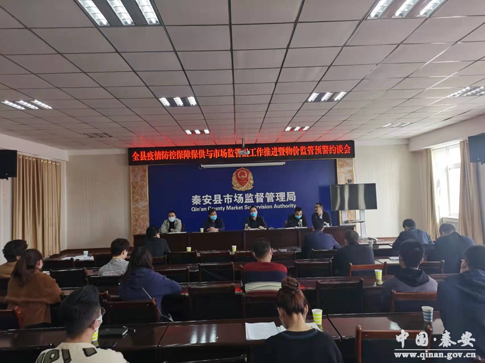 3月12日,秦安县疫情防控保障保供与市场监管组召开工作推进会暨物价监管预警约谈会,对市场保障保供和市场监管领域疫情防控工作进行再部署、再安排。