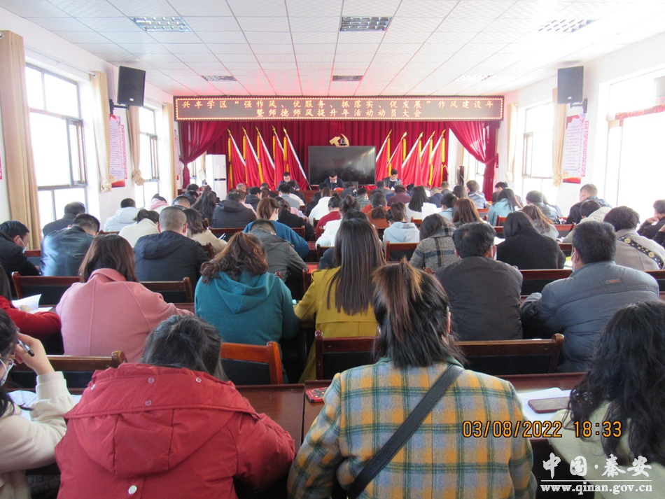 为加强教师队伍建设,不断强化教师自身的行为修养,弘扬新风正气,树立教师形象,推进教育的内涵发展,结合党史学习教育,3月8日,秦安县兴丰学区在镇政府会议室召开“强作风、优服务、抓落实、促发展”作风建设暨师德师风提升年活动动员大会。兴丰镇相关负责人、县教育局第二督查指导组组长、学区党总支班子成员及各支部书记,各中小学校长、幼儿园园长和全体教师共计160余人参加会议。