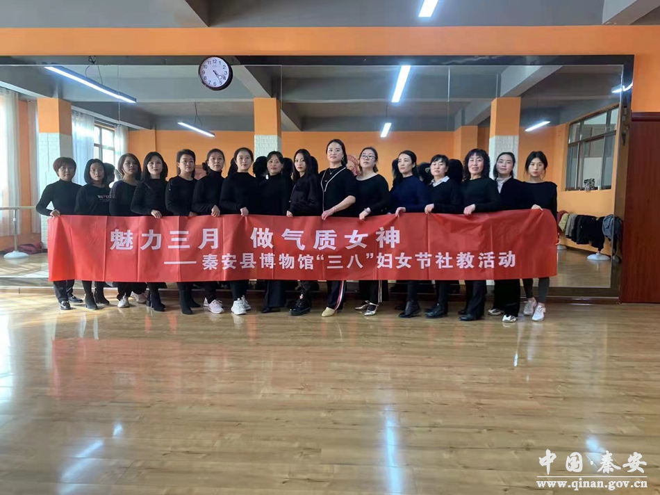 为庆祝“三八”妇女节,丰富职工文化生活,切实打造一支优雅、知性、干练的女性文物工作者队伍,展现新时代女性昂扬向上的精神风貌。3月7日,秦安县博物馆开展了“ 魅力三月,做气质女神——三八妇女节主题社教活动”,特邀请专业老师对博物馆部分志愿者和女干部职工40余人开展了形体礼仪培训。