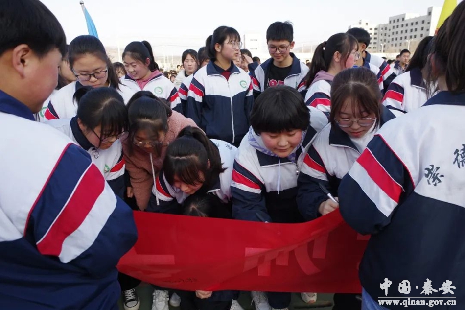 最后,全体高三学生进行了宣誓并在条幅上签字。