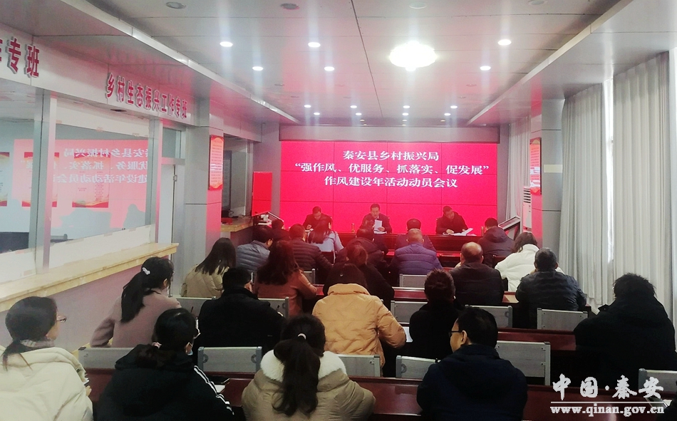 2月28日,为全面贯彻落实中央和省、市、县委作风建设部署要求,秦安县乡村振兴局召开了“强作风、优服务、抓落实、促发展”作风建设年活动动员会议,局班子成员、全体干部职工参加会议。