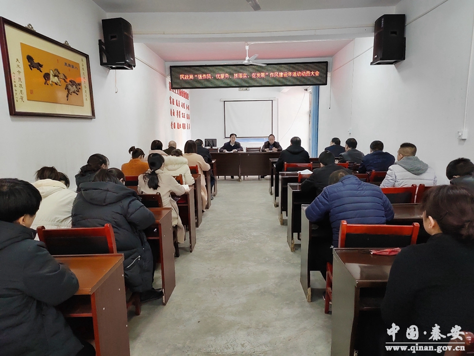 2月24日,秦安县民政局召开“强作风、优服务、抓落实、促发展”作风建设年活动动员大会,全体干部职工参加会议。