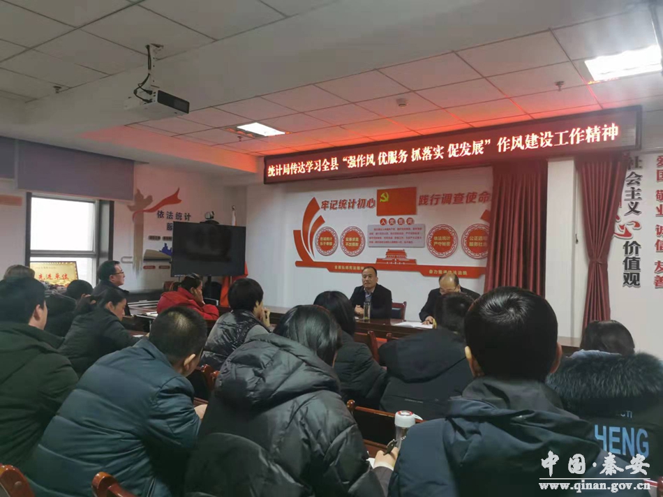2月24日,秦安县统计局召开“强作风、优服务、抓落实、促发展”作风建设年活动动员大会。会议解读了全县“强作风、优服务、抓落实、促发展”作风建设工作会议精神,宣读了《秦安县统计局开展“强作风、优服务、抓落实、促发展”作风建设年活动实施方案》,安排部署了县统计局开展作风建设年活动情况。