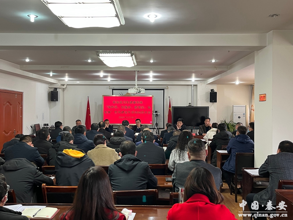 2月25日,秦安县卫健系统召开“强作风、优服务、抓落实、促发展”作风建设年活动动员大会。全面贯彻落实中央和省、市、县委关于作风建设工作的部署安排,要求卫健系统全体干部职工提高政治站位,大力弘扬党的光荣传统和优良作风,努力营造风清气正的政治生态和干事创业环境,为推进卫生健康事业高质量发展提供坚实作风保证。卫健局班子成员,驻教育卫健纪检组组长,驻局机关、各医疗卫生单位、局机关各股室负责人共计60人参加会议。