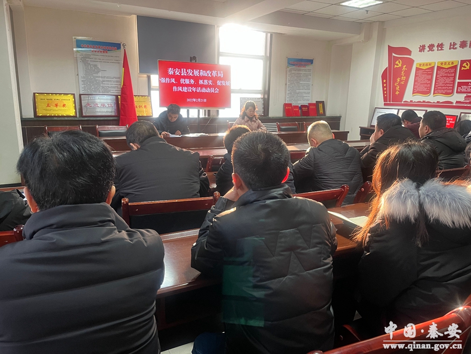 2月21日,秦安县发改局召开“强作风、优服务、抓落实、促发展”作风建设年活动动员会,会上学习了《“强作风、优服务、抓落实、促发展”作风建设年活动实施方案》,宣读了《秦安县发展和改革局“强作风、优服务、抓落实、促发展”作风建设年活动实施方案》,安排部署了开展作风建设年活动相关事宜。
