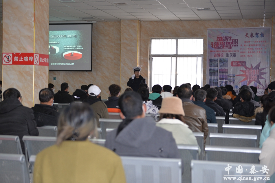 为进一步强化驾校交通安全宣传教育工作,大力增强学员的交通安全意识、法治意识、文明意识,从源头上预防和减少道路交通事故的发生,近日,秦安县公安局交警大队民警深入辖区旭伟科目一考试场,面对面向驾校学员讲解安全驾驶的重要性,为“准司机”上好交通安全第一课。