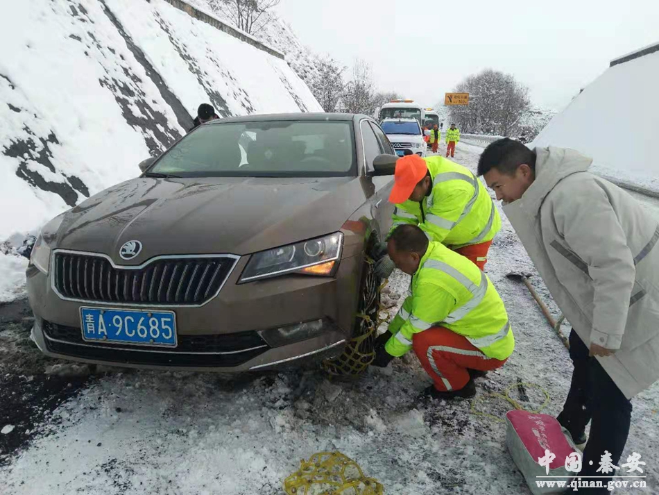 秦安公路段充分发挥路段监控视频优势,加强安全隐患巡查,及时发布路况信息。截至目前,已累计出动人员105人次,机械25台次,撒布融雪剂38吨、防滑料82立方,救助受困车辆30辆,共95人。