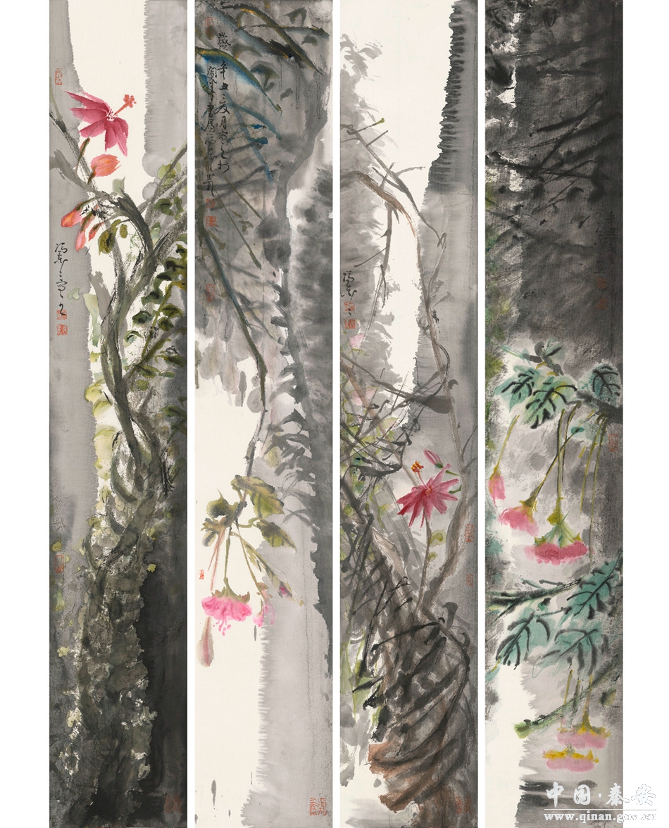 4南国芳华--之一2015年170x30x4cm 没骨 纸本
