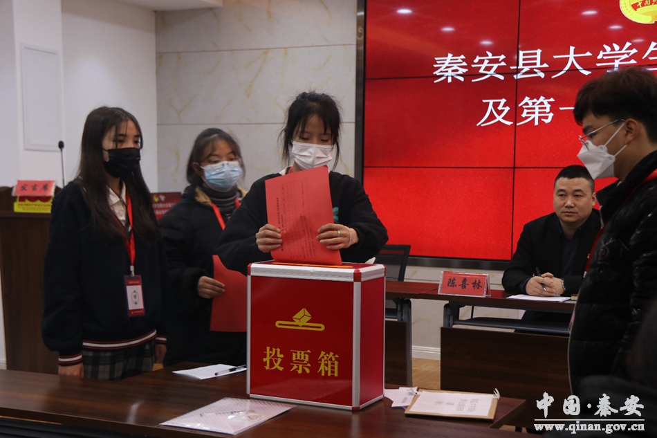 秦安县大学生联合会成员的选举严格认真贯彻执行了民主集中制的原则,经第一届理事会全体成员提名,采取举手表决的方式,确定张帆同志为秦安县大学生联合会第一届会长,安士钊、常思危、孙舒童3名同志当选为副会长,龚家龙同志当选为秦安县大学生联合会第一届秘书长。