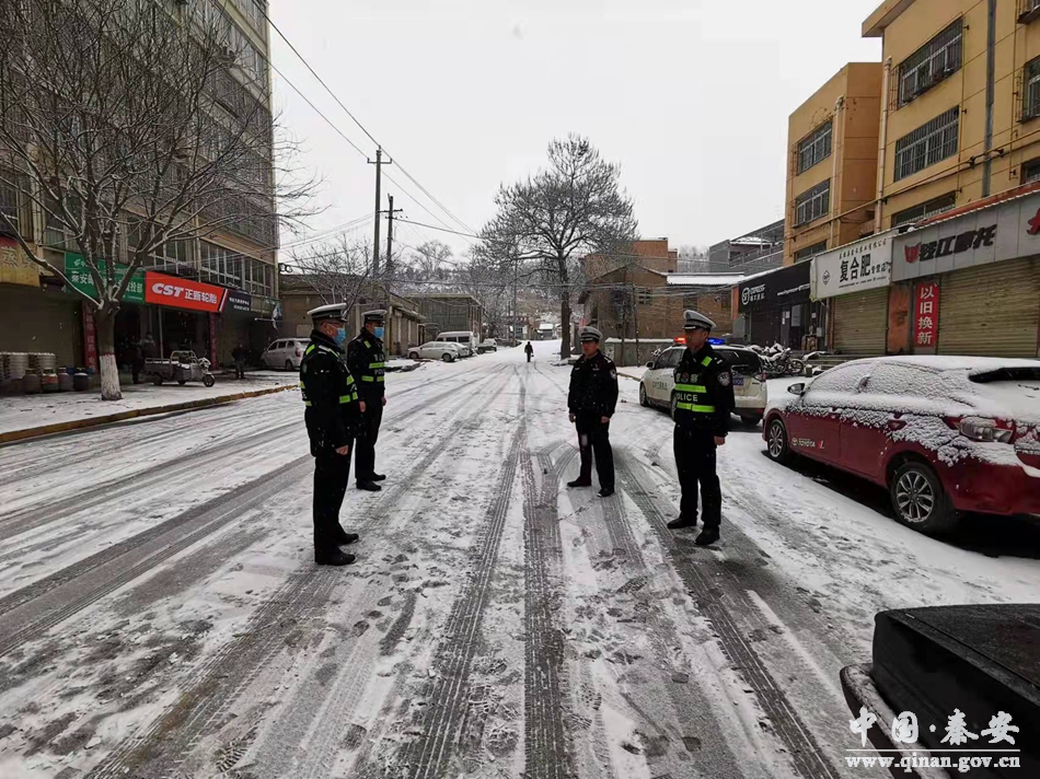 秦安县公安局交警大队各中队民警根据各自管辖路段实际情况,全力以赴,全警下沉路面一线,提高路面见警率和民警管事率,组织警力在辖区重点路口、路段、重要区域采取固定检查和流动巡逻相结合的方式,加大对辖区内重点路口、事故多发点段的管控力度;采取亮警灯、喊话、亲自帮过往车辆安装防滑链等措施加强对过往车辆的指挥疏导,提醒驾驶人减速慢行、谨慎驾驶;同时依托王铺梁执勤点、西川国道口执勤点加强对247国道、城区重点路口路段、各通村公路等辖区弯道、坡道等易积雪、易结冰和事故多发路段加强巡逻力度;同时积极协调公路段工作人员在景昭公路等积雪结冰严重的路段撒防滑盐进行消雪除冰;宣传民警及时关注路况信息及天气信息,通过FM919天水交通广播、微信、微博等多种媒体平台向社会公布辖区天气情况和道路状况,宣传雨雪天气安全行车常识,提高驾驶人交通安全意识。